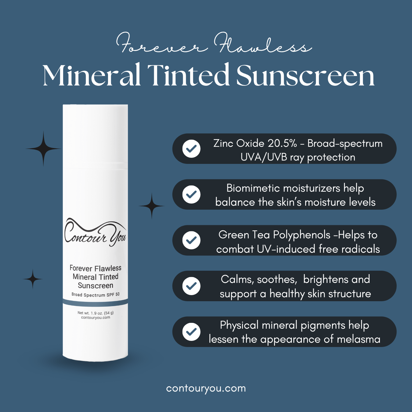 Forever Flawless’ sunscreen products provide superior protection from photo aging. These products offer a high level of finely milled zinc oxide which provides superior broad-spectrum UVA/UVB ray protection, covering the broadest range of the UV spectrum. Available in a variety of formulations suitable for daily use, Forever Flawless by Contour You has sunscreens for all skin types and specific skin needs, including mineral and tinted sunscreens.